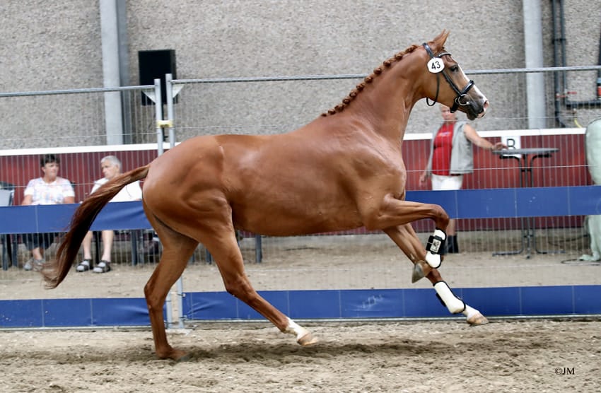 De mooie en extra bewegende vos merrie Orange Apple Blossom (v.Sezuan’s Donnerhall) van fok/eig N v Maaswaal werd daar Voorlopig Keur en kreeg een uitnodiging voor het NMK! De mooie en goed bewegende Oogappel II (v.Fürst Toto) eveneens van fok/eig N v Maaswaal werd Ster bevonden. Deze bruine merrie is tevens te koop!